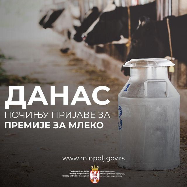 Uprava za agrarna plaćanja Ministarstva poljoprivrede Srbije raspisala je javni poziv za podnošenje zahteva za ostvarivanje prava na premiju za mleko za prvi kvartal 2025. godine.