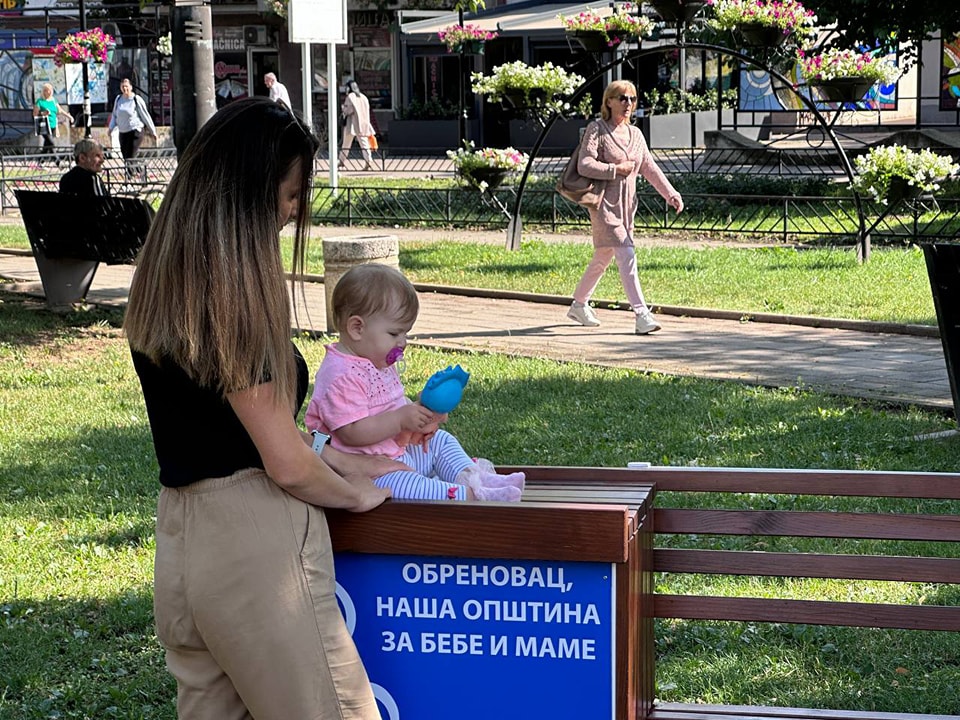 Pod sloganom “Obrenovac, naša opština za bebe i mame” na šest lokacija na teritoriji opštine Obrenovac postavljene su klupe za dojenje, hranjenje i presvlačenje beba. Postavljanje klupa su zajednički sproveli JKP “Parking servis” i Gradska opština Obrenovac sa ciljem da se bebama i mamama olakša boravak van svog doma. Klupe su postavljene u obrenovačkim naseljima Dudovi, Rojkovac i Sunce, duž biciklističko-pešačke staze, uz kanal Kupinac i Gradskom parku.