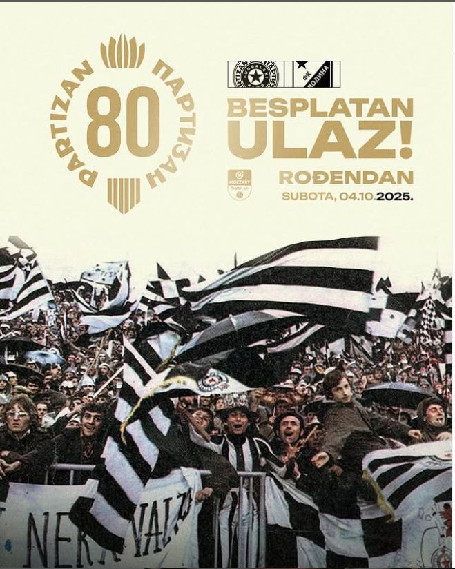 Jugoslovensko sportsko društvo Partizan i fudbalski klub Partizan danas slave veliki jubilej 80. godina od osnivanja. Fudbalski klub, koji je bio pokretač JSD, osnovan je posle okončanja Drugog svetskog rata, 4. oktobra 1945. godine, kao Fiskulturno društvo Centralnog doma Jugoslovenske armije.