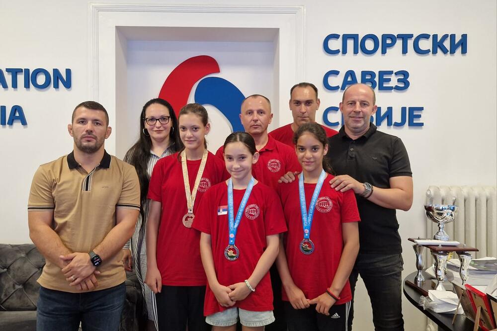Na prijemu u Sportskom savezu Srbije sa predsednikom Davorom Štefanekom i generalnim sekretarom Goranom Marinkovićem razgovarale su kadetkinje osvajačice zlatnih medalja Nina Damjanović, Valentina Petrović i Enita Behramaj i njihovi treneri Aleksandar Petrović i Nataša Damjanović, kao i sekretar Srpskog Kungfu vušu saveza i trener Radenko Tadić.