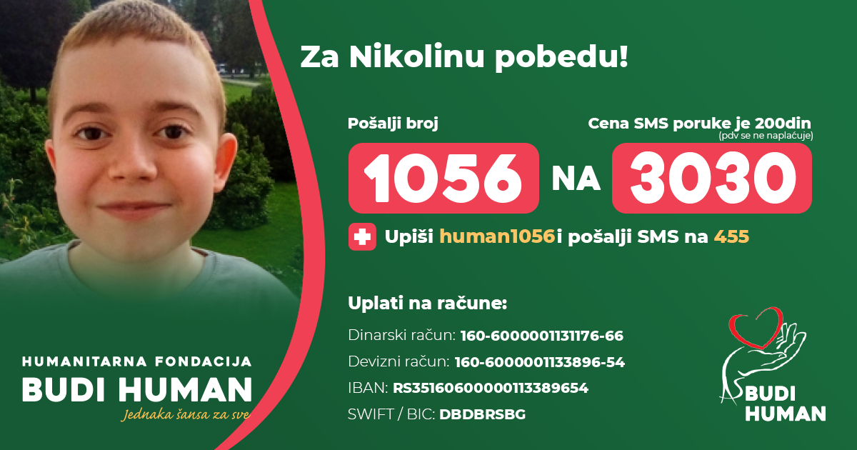 Nikola je rođen 03.02.2007. godine u Beogradu. Odmah po rođenju dijagnostikovana mu je Dišenova mišićna distrofija (nasledna progresivna bolest mišića gde se prvi simptomi pojavljuju u ranom detinjstvu). Bolest najpre zahvata mišiće ramena, kukova, butina i listova, vremenom se širi na sve mišiće koji vremenom slabe i oboleli završe u invalidskim kolicima.